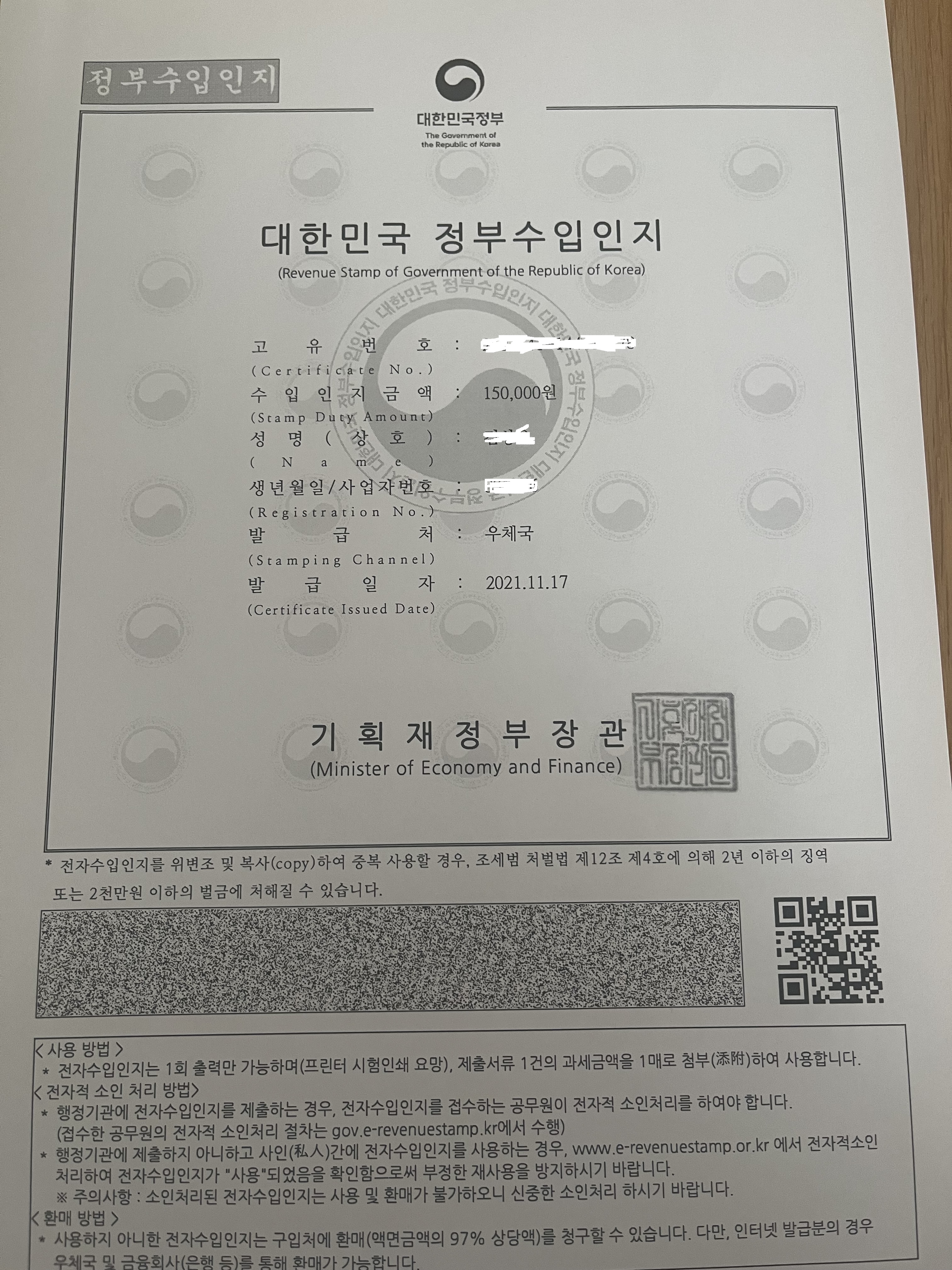수입인지는 분양권을 매매할 때 구매하게 되는데 잘 보관하셨다가 부동산 등기 시 함께 제출하여야 합니다. 간혹 잃어버린 분들이 계셔서 고생하시더라고요.