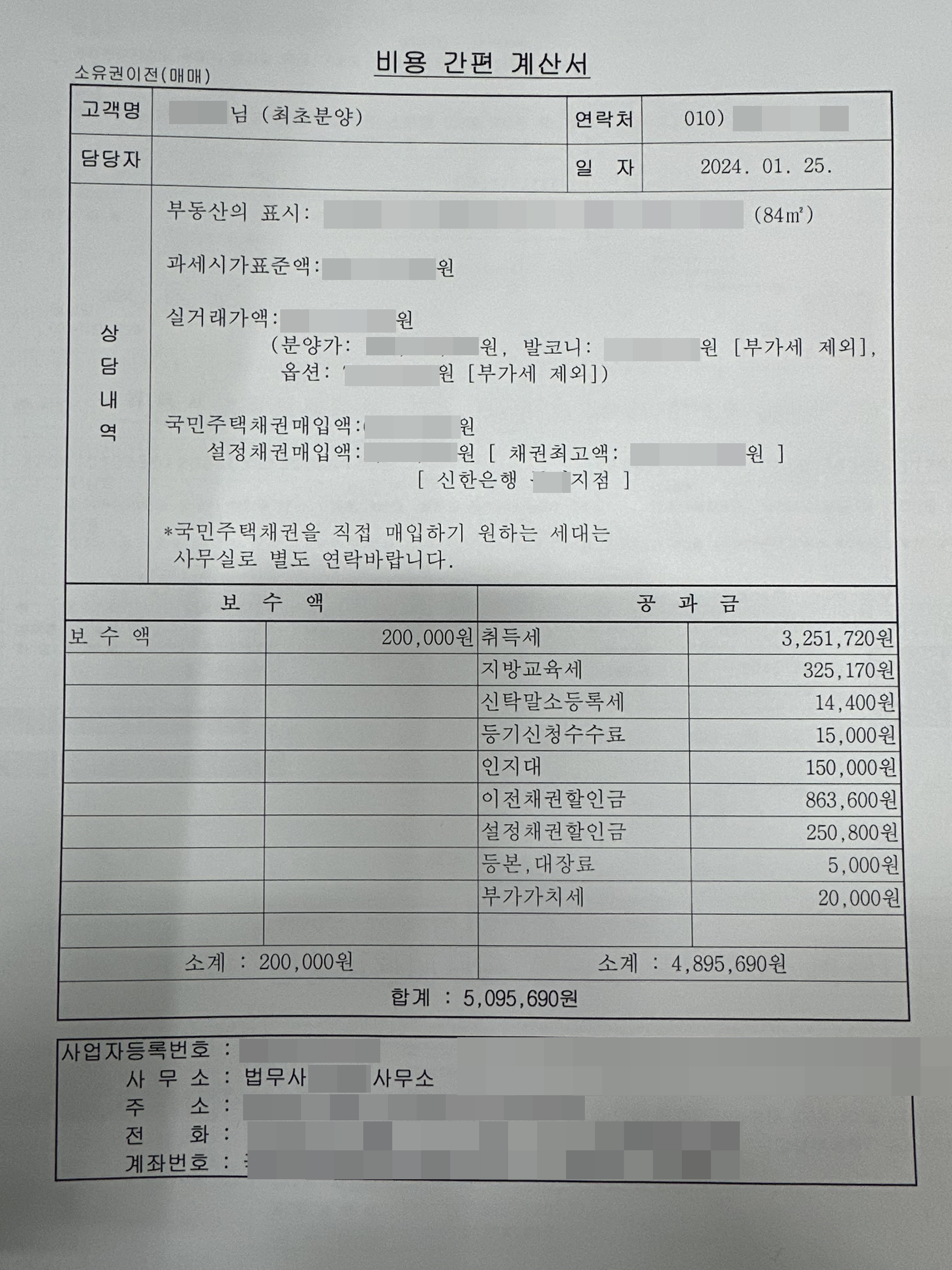 혹시나 저 같은 처음이신 분들은 아파트 등기비용과 수수료는 어느 정도인지 궁금하신 분들이 계실 거라 생각하고 후기 남겨봅니다.